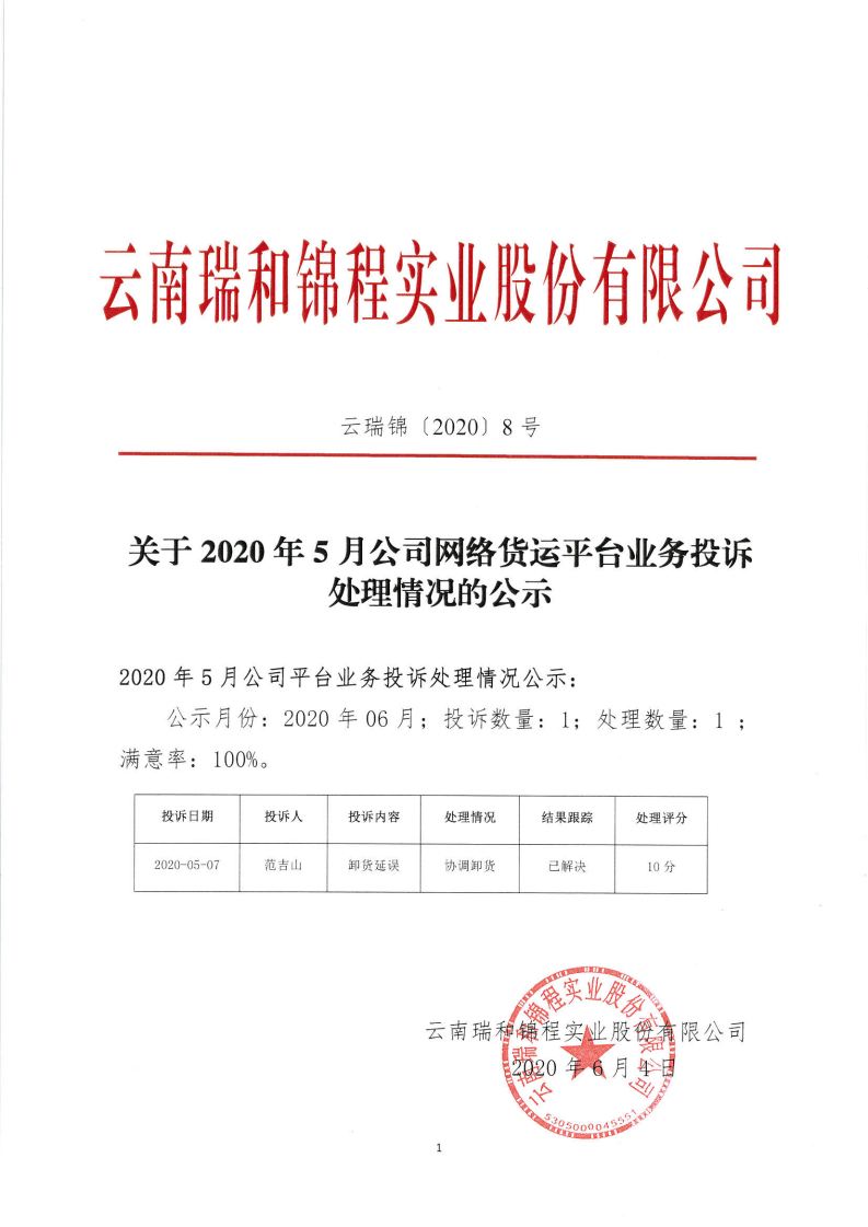 運(yùn)價(jià)線路 車輛動(dòng)態(tài) 公司動(dòng)態(tài) 瑞和司機(jī)APP 瑞和運(yùn)營(yíng)APP 首頁(yè) > 運(yùn)營(yíng)中心 > 公司動(dòng)態(tài) 關(guān)于2020年5月公司網(wǎng)絡(luò)貨運(yùn)平臺(tái)業(yè)務(wù)投訴處理情況的公示