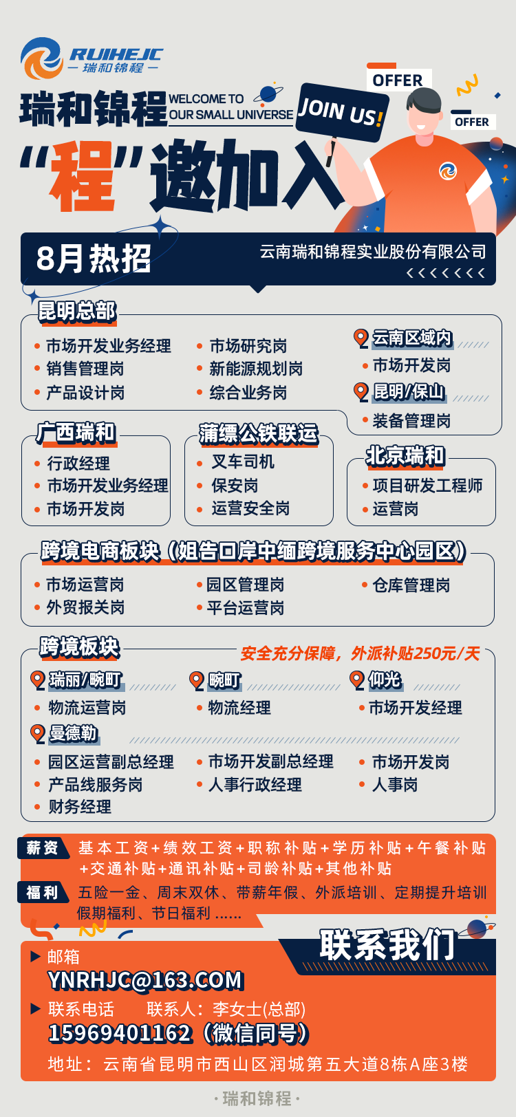 云南瑞和錦程實(shí)業(yè)股份有限公司8月熱招崗位 職位名稱:云南瑞和錦程實(shí)業(yè)股份有限公司8月熱招崗位 工作地點(diǎn): 性別要求: 學(xué)歷要求: 工作性質(zhì): 招聘人數(shù): 薪資待遇: 上一篇:云南瑞和錦程實(shí)業(yè)股份有限公司9月熱招崗位 下一篇:云南瑞和錦程實(shí)業(yè)股份有限公司5月招聘簡(jiǎn)章
