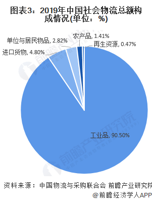 目前我國(guó)五大類社會(huì)物流物品中工業(yè)品物流需求相對(duì)較高。根據(jù)中國(guó)物流與采購(gòu)聯(lián)合會(huì)數(shù)據(jù),2019年我國(guó)工業(yè)品物流總額269.6萬(wàn)億元,在全國(guó)社會(huì)物流總額中占比90.5%,占據(jù)絕對(duì)主導(dǎo)地位。由此可見,工業(yè)物流為我國(guó)當(dāng)前物流行業(yè)發(fā)展的中堅(jiān)力量。