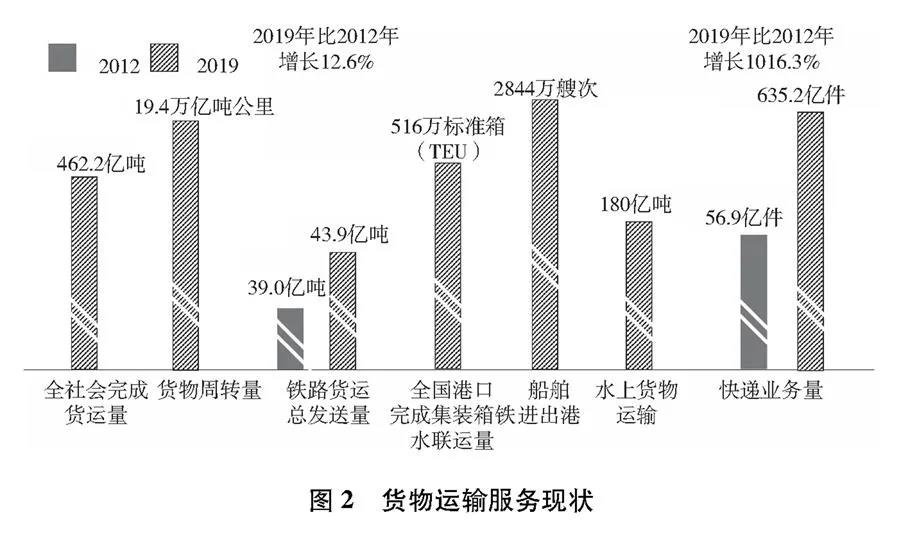 貨物運(yùn)輸服務(wù)保障能力不斷提升。中國(guó)是世界上運(yùn)輸最繁忙的國(guó)家。面對(duì)日益增長(zhǎng)的貨物運(yùn)輸需求,加快多式聯(lián)運(yùn)發(fā)展,創(chuàng)新公鐵聯(lián)運(yùn)、空鐵聯(lián)運(yùn)、鐵水聯(lián)運(yùn)、江海聯(lián)運(yùn)、水水中轉(zhuǎn)、滾裝聯(lián)運(yùn)等高效運(yùn)輸組織模式,開(kāi)展鐵路運(yùn)能提升、水運(yùn)系統(tǒng)升級(jí)、公路貨運(yùn)治理等專項(xiàng)行動(dòng),貨物運(yùn)輸結(jié)構(gòu)持續(xù)優(yōu)化,綜合運(yùn)輸效率不斷提高,物流成本逐步降低,交通運(yùn)輸環(huán)境污染明顯減少,原油、成品油、天然氣管道建設(shè)不斷提速。鐵路運(yùn)量占社會(huì)運(yùn)輸總量比例不斷提升,“公轉(zhuǎn)鐵”行動(dòng)取得突出成效。港口貨物吞吐量和集裝箱吞吐量均居世界第一??爝f業(yè)務(wù)量保持強(qiáng)勁增長(zhǎng)態(tài)勢(shì),連續(xù)6年位居世界第一。運(yùn)輸服務(wù)能力大幅提升,推進(jìn)物流降本增效取得積極成效,促進(jìn)了物流業(yè)轉(zhuǎn)型升級(jí)。