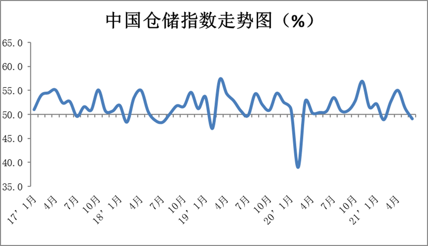 中國物流與采購聯(lián)合會發(fā)布的2021年7月份中國物流業(yè)景氣指數(shù)為50.3%,較上月回落4.3個百分點;中國倉儲指數(shù)為49.1%,較上月回落4.1個百分點。