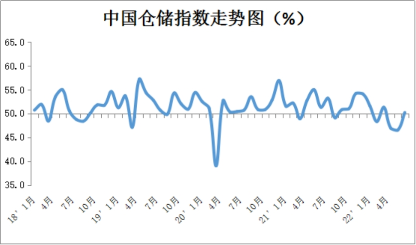 中國物流與采購聯(lián)合會發(fā)布的2022年5月份中國物流業(yè)景氣指數(shù)為49.3%,較上月回回升5.5個百分點(diǎn);中國倉儲指數(shù)為50.2%,較上月回升3.7個百分點(diǎn)。