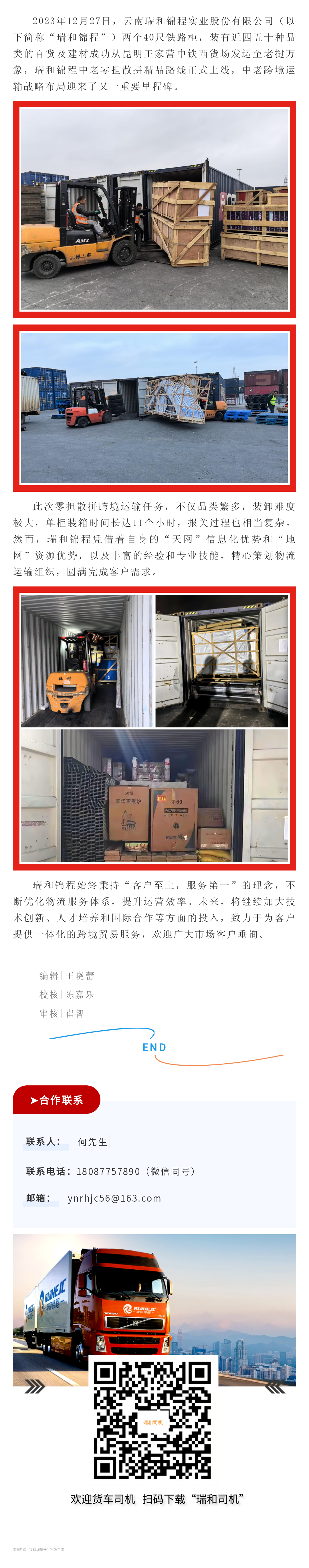 新聞動(dòng)態(tài) 業(yè)務(wù)推介 黨建工會(huì) 電子刊物 公示公告 首頁(yè) > 企業(yè)資訊 > 業(yè)務(wù)推介 中老首發(fā)|瑞和錦程零擔(dān)散拼精品路線上線 來(lái)源:瑞和錦程 瀏覽量:6580 日期:2023-12-27 上一篇:淺談現(xiàn)代物流行業(yè)發(fā)展前景 下一篇:中緬跨境物流丨海陸空三通道正常發(fā)運(yùn)